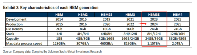 此外,由于供需持续失衡,HBM3E 的价格预计也将比 HBM3 高出 10-20%。高盛预计,这种价格溢价将至少持续到 2025 年。