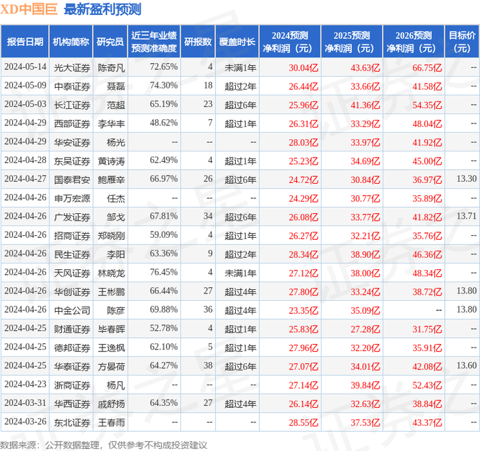 以下是详细的盈利预测信息: