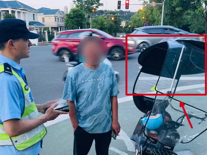 5月17日下午3点20分许,鄞州交警在福庆北路与中山东路路口,拦下一名骑电动自行车的外卖小哥,经检测,其电动自行车时速达到59.8km/h,车辆存在改装电池的违法行为。