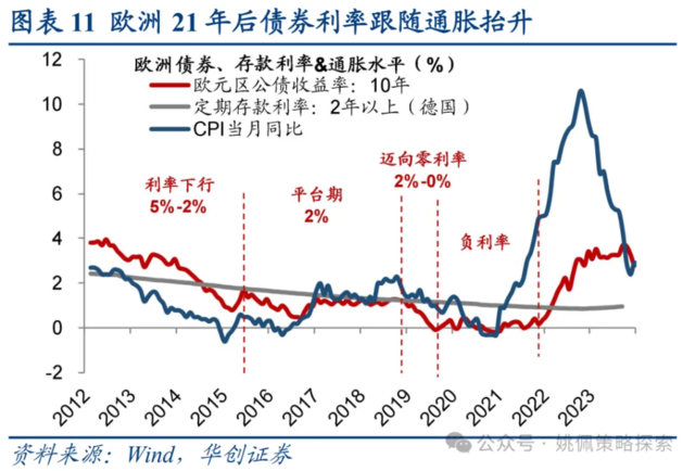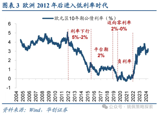 华创证券认为,日本低利率时代历经漫长的30年,居民风险偏好消耗殆尽拥抱现金,机构拉久期、扩海外以增厚收益;欧洲低利率历经10年,股市依然亮眼,居民&机构拥抱权益,但实体需求偏弱。