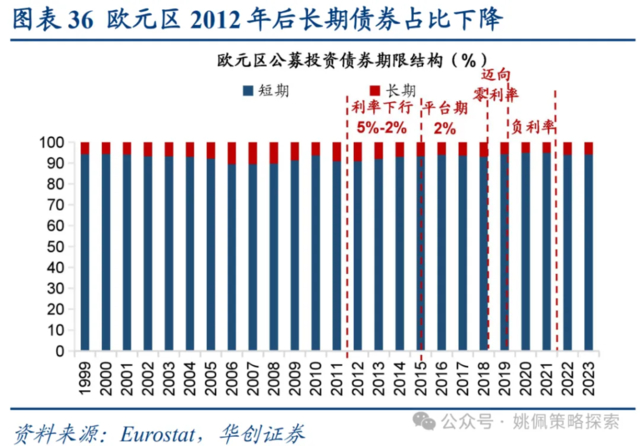 2、欧洲低利率时代:2012年欧债危机爆发,欧元区经济增速进一步降档(2%-1.1%)2012-15利率下行(5%-2%)、2015-18平台期(2%)、2018-19迈向零利率(2%-0%)、2019-21负利率时代。