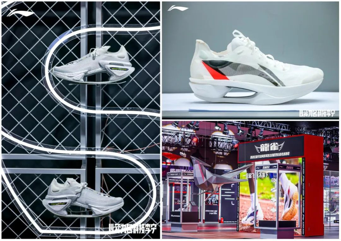 此次科技大秀中,李宁又官宣最新三大创新成果:绝影3代跑鞋,由超级碳板和超级弜结构加持;顶级竞速跑鞋“龙雀”,其为前掌跑法的极致竞速运动员而生,运用防暴雨双透纳米科技。