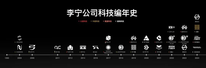 从官方的科技编年史可看到,2019年起,李宁的科技创新呈现井喷之势。