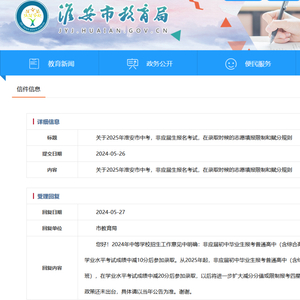5月27日,淮安市教育局在其官网上回复网友时透露2024年中考招生政策:非应届初中毕业生报考普通高中,2024年将减10分后参加录取,2025年将减20分后参加录取,以后还将进一步扩大减分分值或限制报考四星级高中。