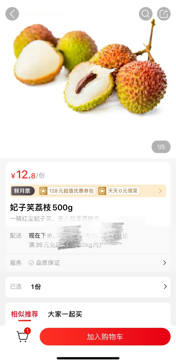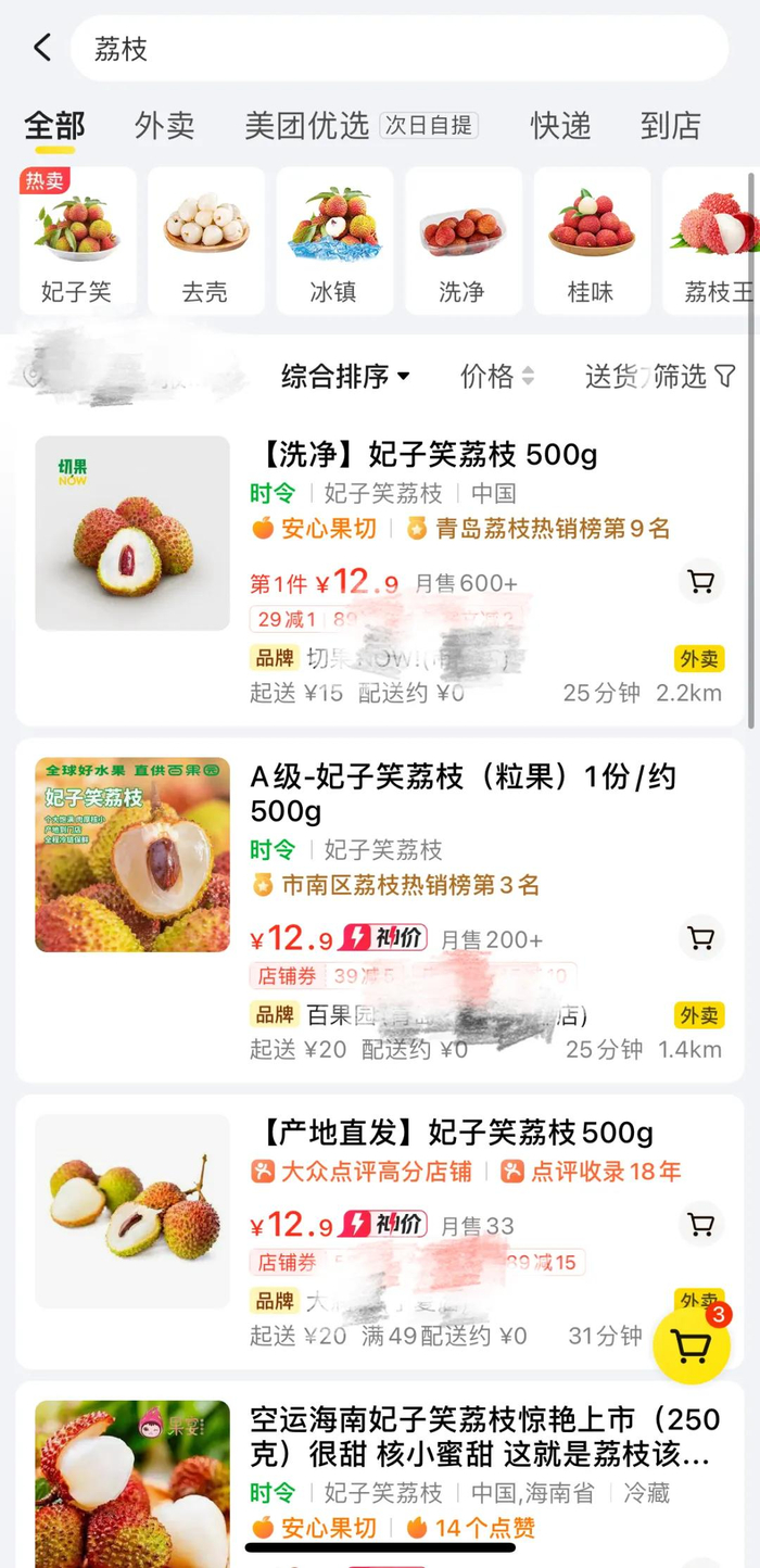 至于成都地区的售价,记者在某App查询看到,火山妃子笑荔枝(约520g)售价为14.9元。