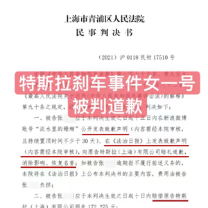 记者从特斯拉方面获悉,该案案号为(2021)沪0118民初17510号,原告为特斯拉(上海)有限公司,被告为张女士。上海市青浦区人民法院于5月30日下午对此案作出一审判决:张女士公开发表致歉声明,并赔偿特斯拉(上海)有限公司各项损失合计172275元。