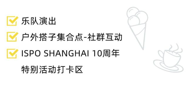 本届展会的室外体育公园中,再度规划了一个多元户外休闲空间,举办第二届能量生活节,携咖啡、冰激凌&健康饮品等生活方式品牌,打造现场自然与城市融合的户外生活方式,为大家带来一场松弛、慢节奏的户外体验。