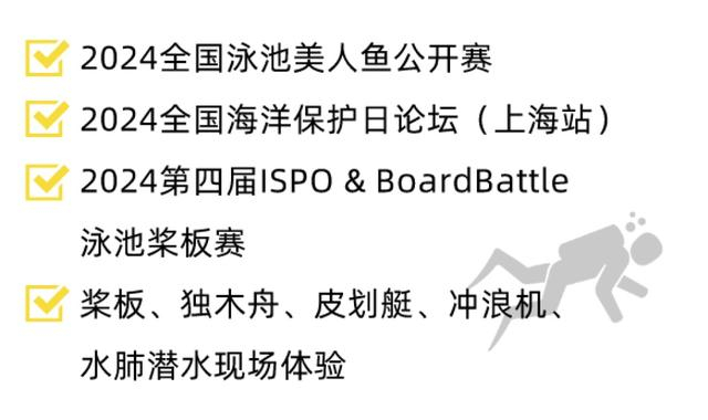 ISPO水上运动嘉年华涵盖冲浪板、桨板、皮划艇、潜水设备、垂钓用品、水上充气用品、防水用品,冲浪服饰、涉水智能设备等品类,汇聚全国水上俱乐部教练员,水上设施场馆经营者,水上设备品牌商及制造商。当然,还有全国的水上俱乐部会员、户外运动爱好者、冲浪达人、潜水员们都将前来打卡。