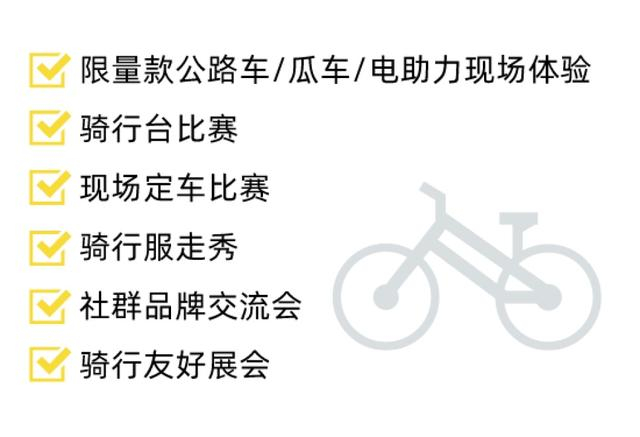 涵盖专业骑行、城市骑行及智能出行三个人群,全面展示整车、骑行装备、配件、零部件、骑行穿搭、智能装备等。从骑行竞赛、骑行社交到骑行黑科技,打造国内骑行爱好者交流盛宴。国内首个骑行友好展会,为骑行玩家提供自行车入场特别通道及自行车存放点。