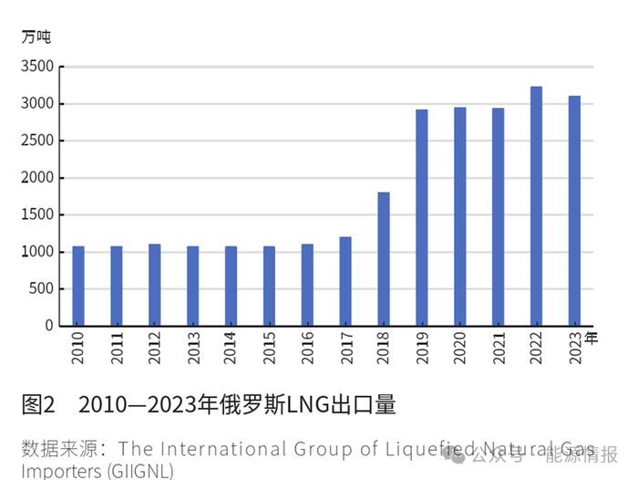 近些年俄罗斯LNG出口量保持相对稳定,2021—2023年保持在2930~3210万吨/年的水平(见图2),其中约一半输出到欧盟国家;近年来,欧盟国家和中国自俄的LNG进口量略有增加。