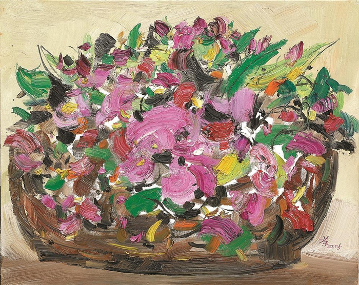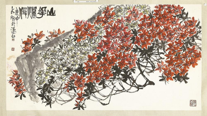 除了探索花卉在传统文化中的象征意义,不少作品在创作中不拘一格,从审美和内心的感悟出发,经营位置,表达艺术家胸中意象。如吴冠中的《花与花》、苏天赐的《桃花簇拥的山村》、陈大羽的《山花烂漫》、陈家泠的《露气蒙蒙芙蓉新》、郭怡孮的《繁荣昌盛》、周彦生的《岭南三月》等作品都充满了形式美与意境美。