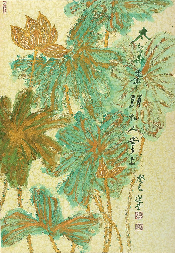 莲花出淤泥而不染,中通外直,不蔓不枝,有“花中君子”美称,在中国传统文化中,被赋予了高洁、清廉的象征意义,成为画家们重要的创作题材。齐白石的《鸳鸯卧莲》展示了鸳鸯和莲花的和谐共存,清代马元驭的《荷花》则表现了荷花出淤泥而不染的纯洁形象。荷花名称中的“荷”与和平的“和”谐音,齐白石的《和平万年》以荷花和瓶子的组合,成为和平与团结的象征。饶宗颐的《莲莲吉庆》《玉井莲》等作品也都饱含着对高洁品格的颂扬。