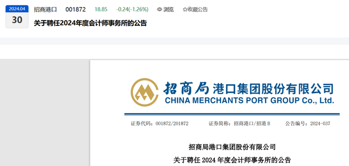 2024-04-30招商港口:关于聘任2024年度会计师事务所的公告