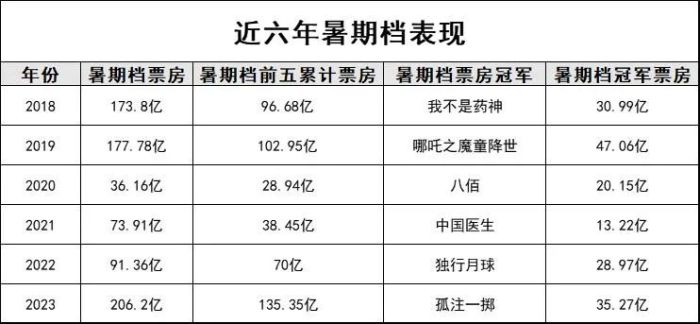但客观来说,想重现去年暑期档的盛况并不容易。纵览近六年暑期档,虽不乏单片几十亿的头部爆款,然而像去年一个档期就能够诞生五部超大量级项目,拿下135亿+档期票房的状况,仍属史无前例。