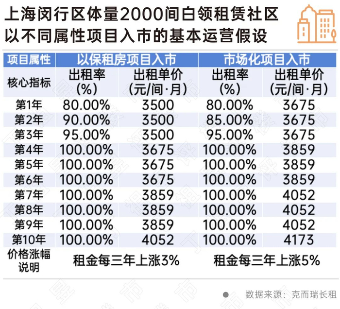 以上海闵行区较偏远的新建租赁社区为例,项目总建筑面积约6万平方米,总房源供应量为1000间,平均每间房间的建筑面积约50平方米。