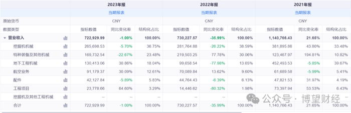 伴随着技术的进步,是公司产品线的不断扩展,公司目前的主要产品包括挖掘机机械、特种装备及其他机械、地下工程机械。根据2023年年报显示,挖掘机机械占比36.75%,特种装备及其他机械占比23.48%,地下工程机械占比18%。