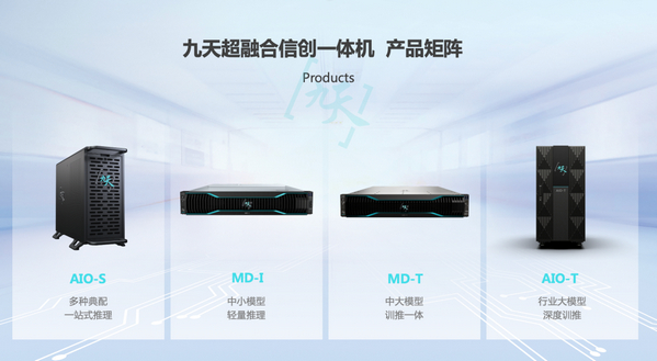 一是全系信创,兼容生态。九天一体机作为边缘算力基座,主打国产算力,原生支持国产信创算力芯片兼容国外主流芯片生态,同时实现异构算力的同框混插,满足客户多样化算力需求,实现算力资源的充分利用。