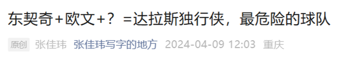 张佳玮,公众号:张佳玮写字的地方欧文搭档东契奇后,三巨头终于只剩下了杜兰特
