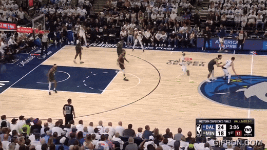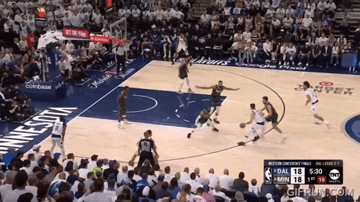 森林狼开场紧守欧文,麦丹轮转护筐,卢卡一看即明,于是:撤步三分球投爱德华兹,顶开麦丹中投,莱夫里上场内切牵空戈贝尔后,卢卡更能施展他那所向无敌的、大范甘迪和雷吉·米勒都赞美的“使出来你就完了”的“过掩护放慢脚步卡防守人在背后的局部五打四”。