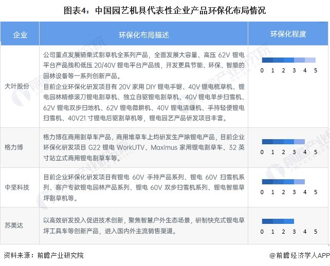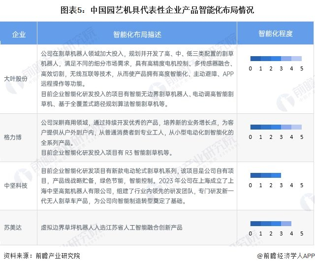 中国代表性企业园艺机具产品智能化及环保化发展情况