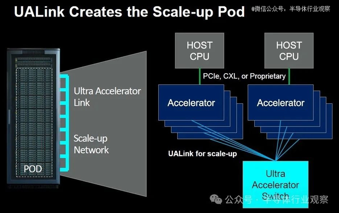 因此在这种情况下,对于其他人来说,除了用于连接 MI300A APU 的 AMD Infinity Fabric 之外,没有其他选择。与 InfiniBand/以太网的情况类似,需要某种“超级”竞争对手联盟来填补非 Nvidia 的“pod 空缺”。而这正是UALink推出的重要原因。