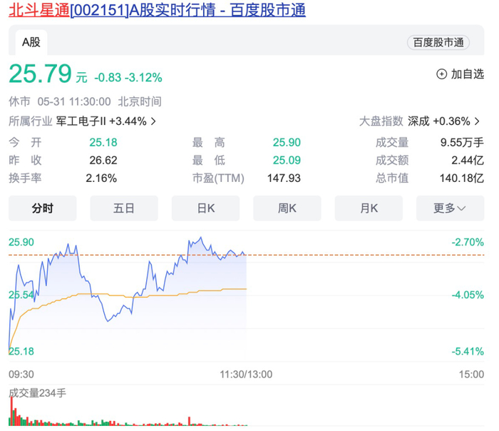 受此消息影响,北斗星通今日开盘价25.18元/股,随后一度跌近6%。资料显示,大基金一期于2016年7月成为北斗星通第二大股东,持股比例为11.6%。随后几年里,大基金一期陆续对北斗星通进行了减持。根据公告内容,大基金一期目前持股6.63%,计划在公告减持之日起15个交易日后的3个月内,减持不超过1.98%公司股份。