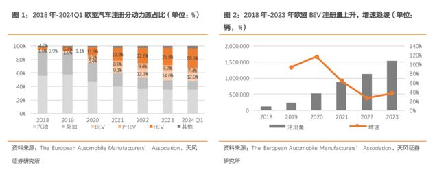 HEV的快速增长与欧美市场的环境息息相关。欧美普遍缺乏充电基础设施,HEV相比纯电车无需外部充电,没有续航焦虑,低温环境适应性也更强,并且HEV售价更低,二手车保值率更高;相比燃油车,HEV的油耗更低,纯电驱动的加入也更有利于汽车的智能化,并提供更强的加速性能。
