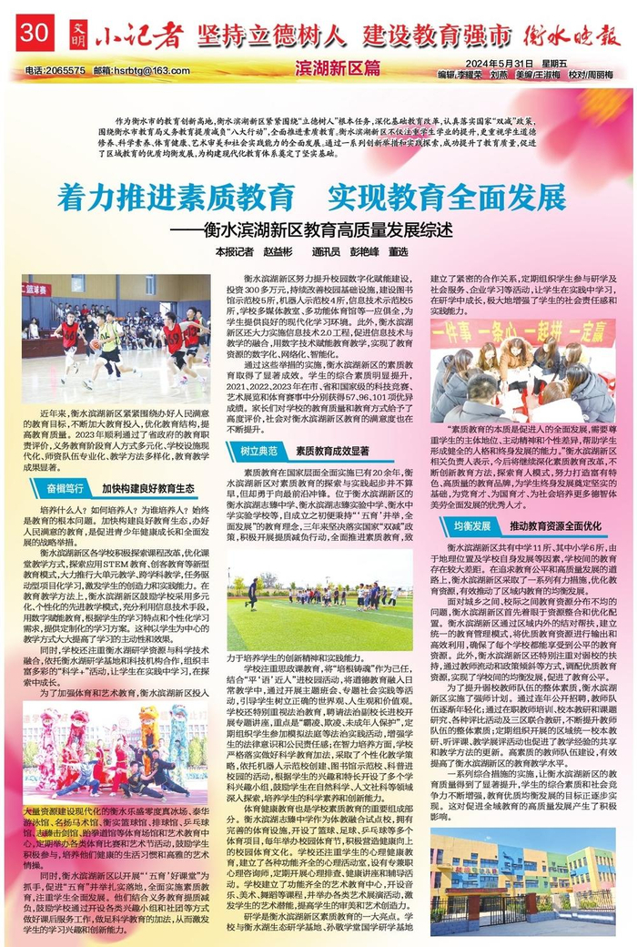 着力推进素质教育 实现教育全面发展|衡水滨湖新区教育高质量发展综述
