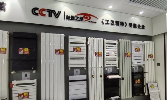 除了直白的“央视上榜品牌”,还有一些商家用了更“新鲜”的表述。“看暖气片吗?”同楼层的另一家门店,工作人员热情地打着招呼。记者走进店内,发现该品牌散热器同样与央视“缘分不浅”。墙壁上的宣传字样标明,这个品牌是“CCTV发现之旅《工匠精神》受邀企业”。