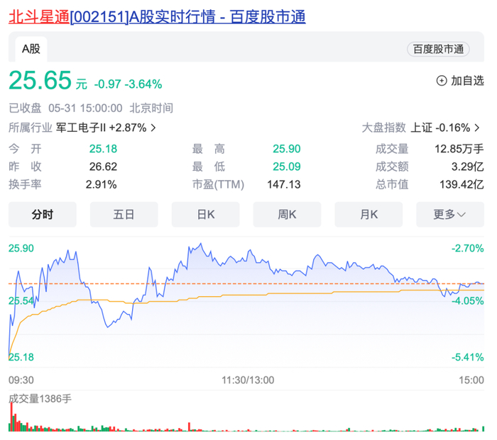 大基金一期陆续退场,北斗星通盘中大跌