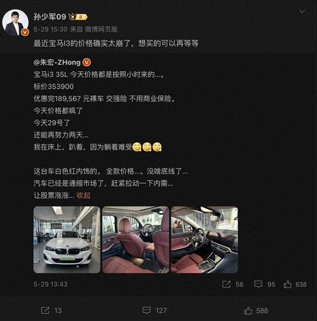 宝马i3价格"跳水":19万元可开走,新势力有压力了?