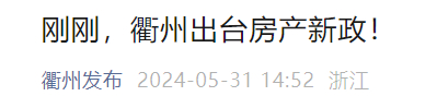 5月31日,据“衢州发布”公众号消息,衢州市城乡住房工作协调委员会发布《关于进一步优化房地产市场平稳健康发展若干举措的通知》,进一步优化房地产政策,满足多样化住房需求,促进房地产市场平稳健康发展。
