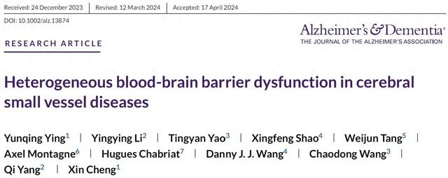 华山医院程忻团队揭示脑小血管病血脑屏障功能障碍潜在机制的异质性