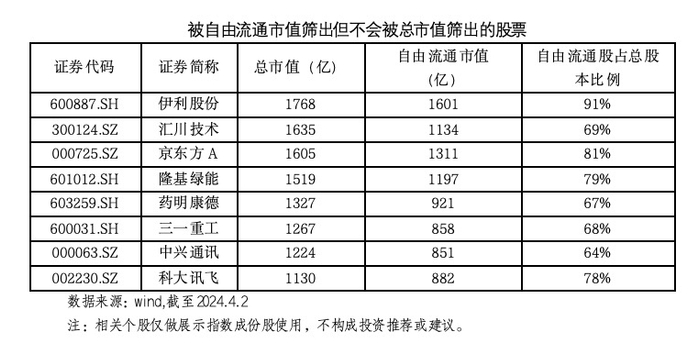 自由流通市值可以筛选出流动性更好的成份股,避免选出总市值大但自由流通市值较小的公司,从而提高指数成份股的流动性。