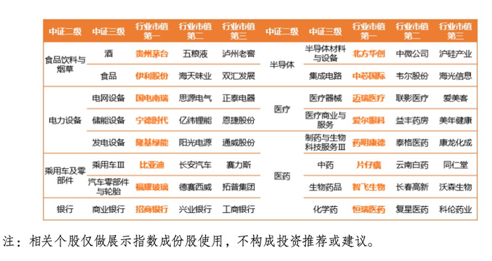要实现行业龙头的广泛覆盖,就要同时做到行业覆盖度广和选出细分龙头公司。中证A50成份股选取方式为所属中证三级行业内过去一年日均自由流通市值排名第一的股票。