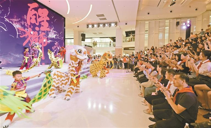 深圳明德实验学校(集团)香蜜校区学生表演《龙狮少年 舞动鹏城》。