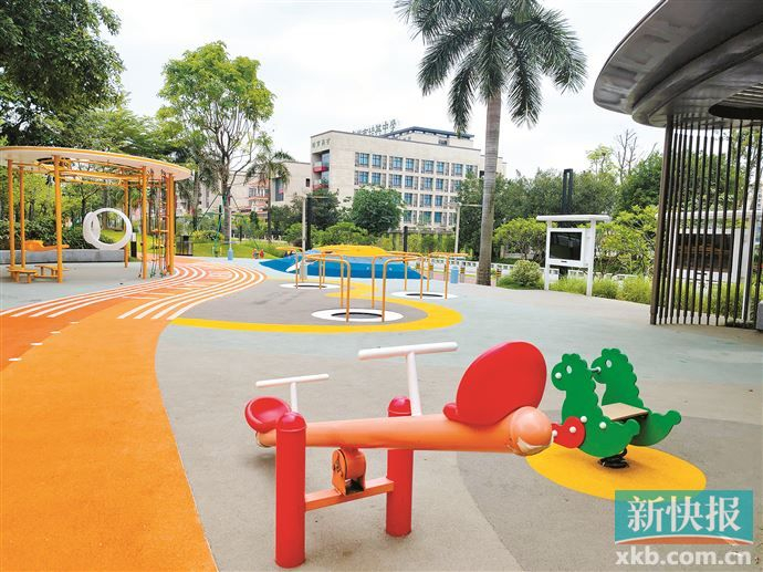 滑梯、跷跷板、沙坑、秋千、爬网、摇马、儿童跑道……现在,广州越来越多小区致力于打造孩子的游乐场地。