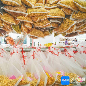 三亚市崖州湾科技城南繁服务站,工作人员正对成熟的各品种大豆进行分类打包。资料图