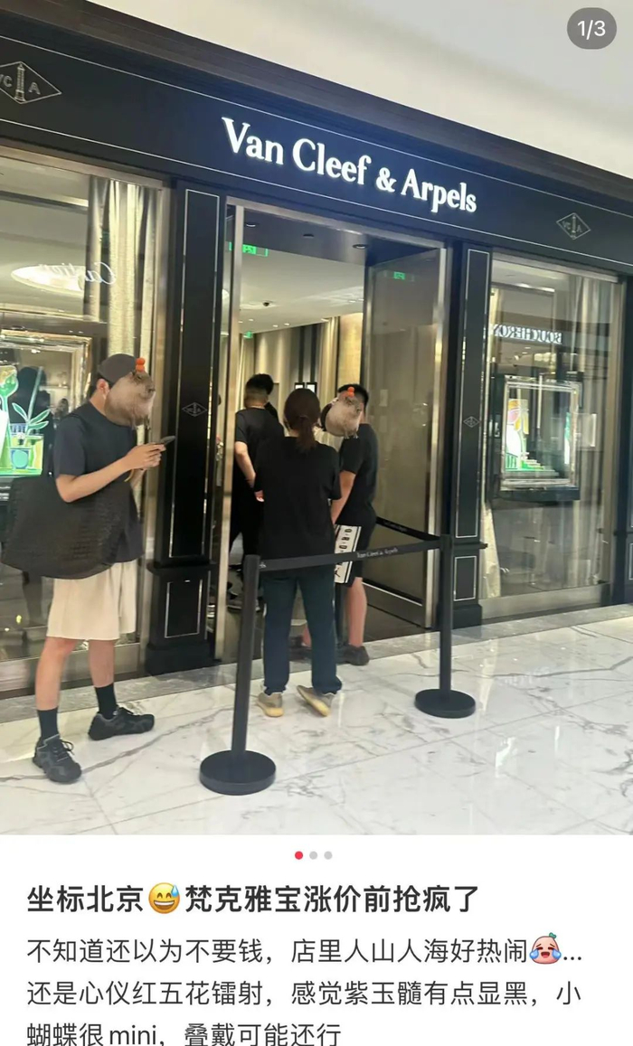 近日,法国奢侈珠宝品牌梵克雅宝(Van Cleef Arples)传出涨价消息后,排队抢购的场景便出现在了北京、香港、三亚、大阪等全球多座城市。