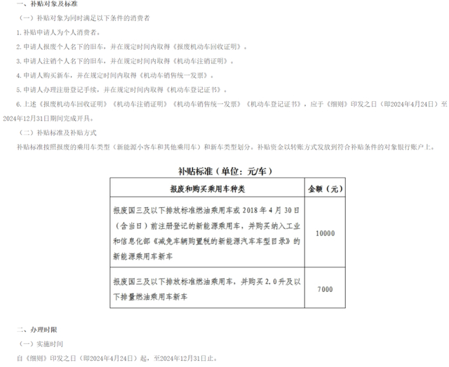 而在同一天,北京市也推出了汽车以旧换新补贴政策,以进一步刺激汽车消费。根据《2024年北京市汽车以旧换新补贴实施细则》(下称《细则》),消费者通过报废老旧机动车并购买新车,可获得最高10000元的补贴。这一政策旨在通过经济激励的方式,引导市民淘汰老旧、高排放车辆,选择更加环保、高效的新车。