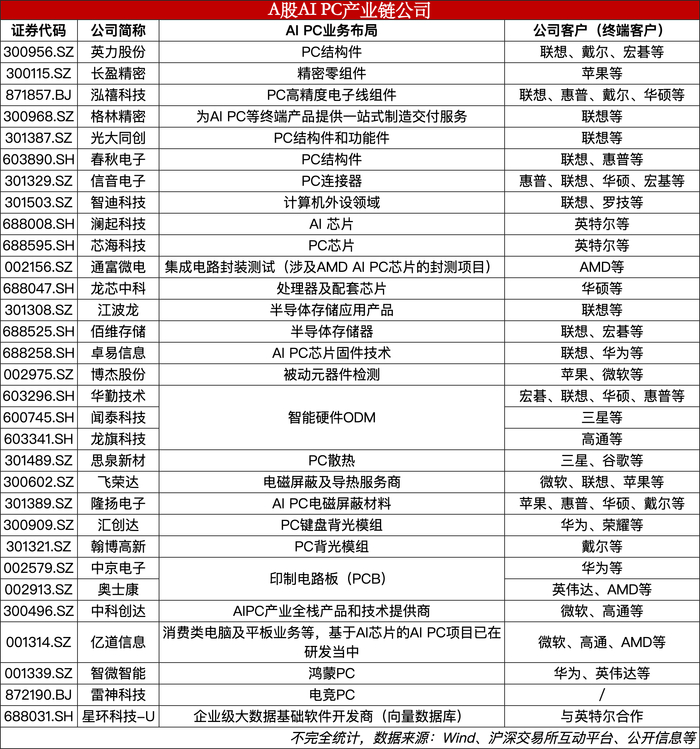 作为产业链上中下游共同看好的风口,AI PC赛道不缺追随者。无论芯片、操作系统还是整体厂商,全行业都在抢滩布局AI PC。A股市场上,上市公司也纷纷布局AI PC,抢占发展新赛道。