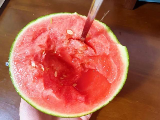 对了,下野地西瓜还是天然的沙瓤口感,勺子轻轻一压,甜润的西瓜汁就能淌出一汪醴泉,戳根吸管就能直接喝西瓜汁了~