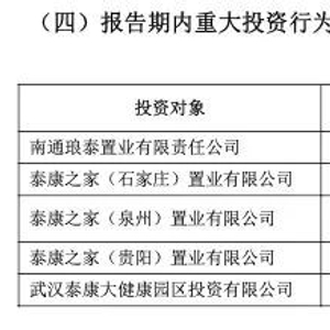 从投资标的的位置来看,泰康之家(石家庄)置业有限公司、泰康之家(贵阳)置业有限公司、泰康之家(昆明)健康产业发展有限、泰康之家(福州)置业有限责任公司 、泰康之家桂园(南宁)置业有限公司、泰康之家湘园(长沙)置业有限公司等均为省会城市。