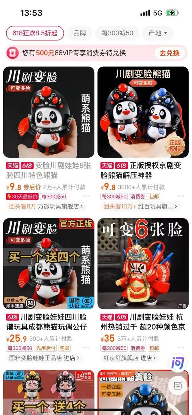 一个萌化版的川剧脸谱娃娃,轻轻按一下头上的帽子就变了一张脸。这个最多可以变出8张脸谱的变脸玩具今年火爆全网。淘宝上各大店铺的累计销量从几百到2万不等。而在各大社交网络,晒出这款玩具并表示“完全停不下来”的是大多是成年人。