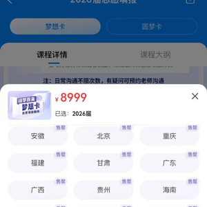 峰学蔚来是由张雪峰打造专门提供高考志愿填报服务的APP,记者查询发现,目前张雪峰高考志愿填报服务共分为三档,分别对应不同阶段的高中生,其中2026届收费最低,8999元起。最为紧迫的2024届服务分为11999元的梦想卡和17999元的圆梦卡。虽然价格不低,但有“张雪峰标签”的一对一服务在家长中受到热捧,甚至需要“抢购”。