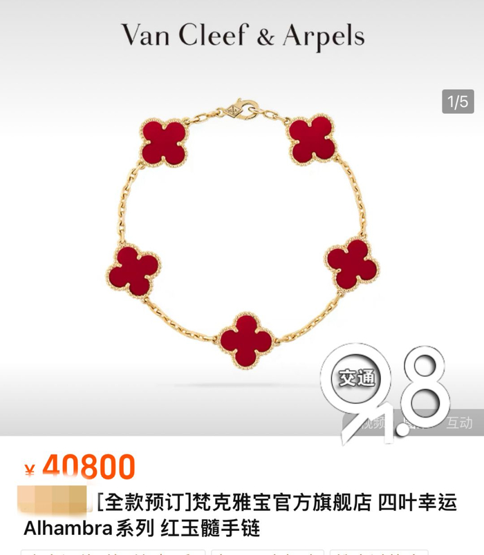 记者在某电商平台看到,“梵克雅宝”品牌的官方旗舰店内,经典五花手链(黄k金红玉髓)从36700元涨至40800元;18K玫瑰金红玉髓项链从13400元涨至14100元……