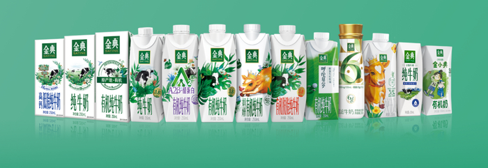 在包装上,金典创新性地研发出以植物基为主要原料的瓶盖和零铝箔低碳无菌纸基复合包装等。
