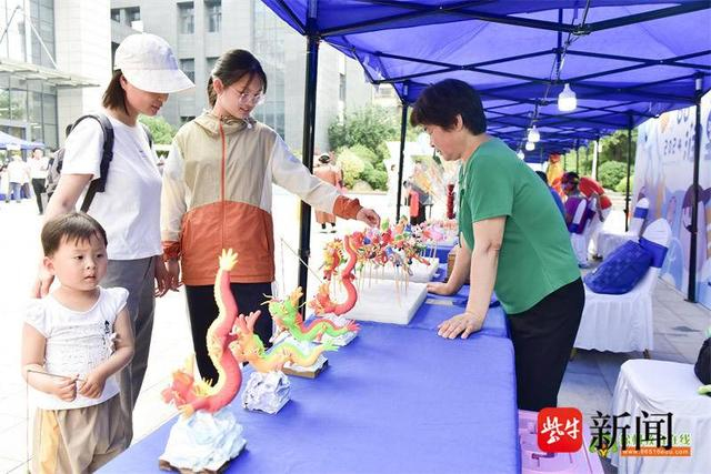 在活动现场的文明市集上,众多的徐州非遗项目,如徐州香包、中国绳编、桃木雕刻、糖画、漆扇、雨卓烙画等,散发着独特的艺术魅力,吸引着市民们驻足观赏、选购。