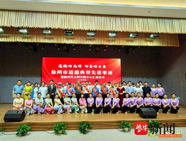 在云龙区新时代文明实践中心,“道德的光辉•向善的力量”徐州市道德典型先进事迹巡演正在热烈上演。以中国好人徐晓军为原型的小品《天职》,全国诚实守信模范杜长胜为原型的朗诵《一言为重百金经》,徐州好人陈孟军为原型的小品《一颗永不生绣的螺丝钉》……一个个生动的模范人物故事感人至深,赢得现场观众阵阵掌声。