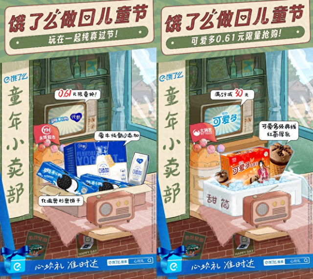 除了电动玩具车、考古玩具等适合儿童的礼物,各类毛绒公仔、拼装积木和盲盒等成年人的“快乐”也非常热销。饿了么数据显示,盲盒潮玩、桌游类玩具外卖量分别增长84%和60%,雪糕、冰棍等夏日零食也环比增长约30%。当儿童节遇上高温入夏,三色杯雪糕、绿舌头等各种“儿时复古”棒冰和雪糕人气回归,童年夏天最期待的一口甜在成年后的这天回味,也仿佛在某个瞬间真的回到童年。